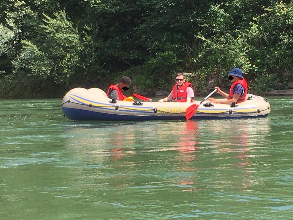 Am Sonntag gingen die Jugendlichen mit den Sozialpädagogen auf einen spannenden Boots- Trip mit einem Gummiboot.