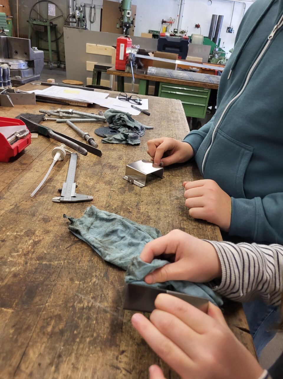 Zuerst konnten wir in der Schreinerei ein Holzauto, das selber fahren kann, bauen. Danach durften wir in der Trainings- und Orientierungswerkstatt eine Laterne erstellen. Am Nachmittag gestalteten wir diesen Text im Sekretariat. Liebe Grüsse von den Zukunftskindern Emma und Anouk.